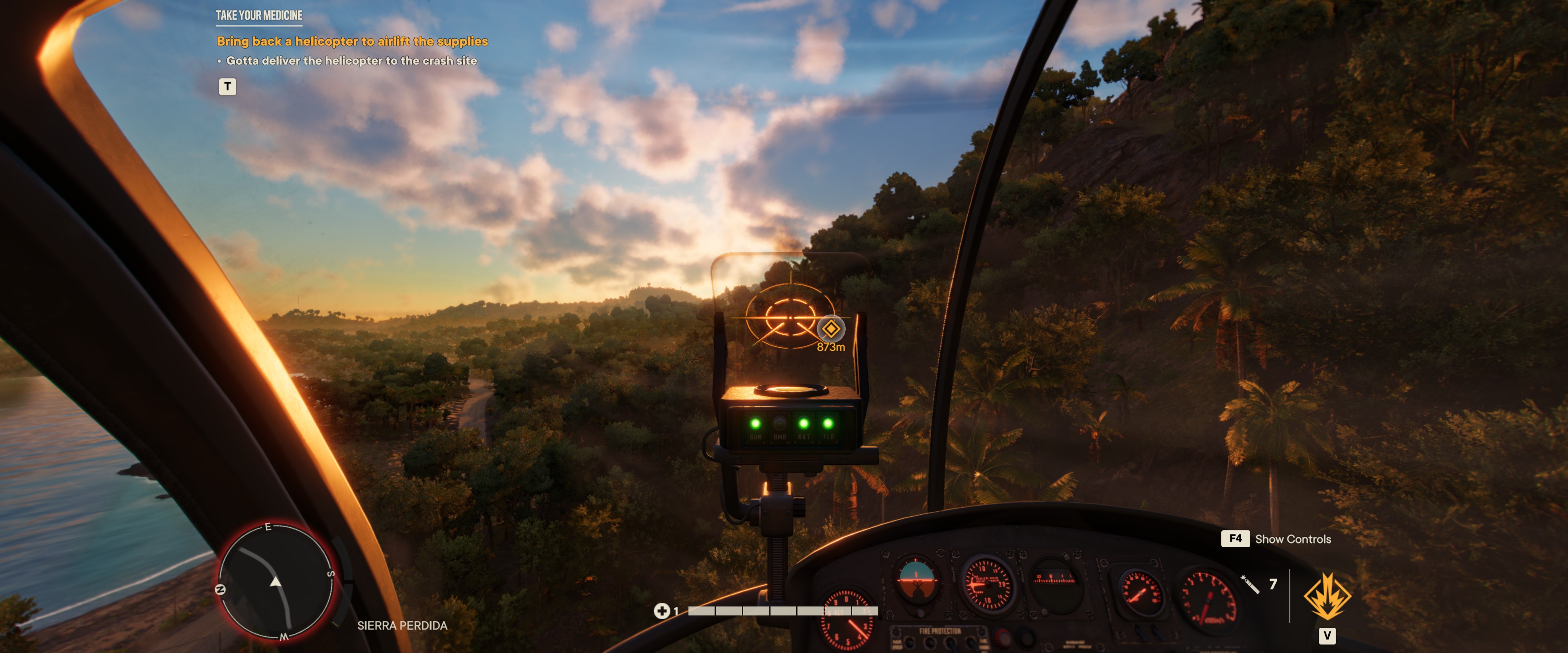 The controls of vehicles are an improvement over Far Cry 5, but still a joke by any human metric. Especially the plane. You can do a barrel roll without the pitch or yaw changing an inch. You can fly in a 45° bank and the plane will still fly straight as an arrow. It is so awkward and unnatural that it is impossible to get used to for anyone who has flown a plane in a game that gives a toss about physics. Comparatively the helicopter and land vehicles are acceptable, but still far worse than in Ghost Recon.